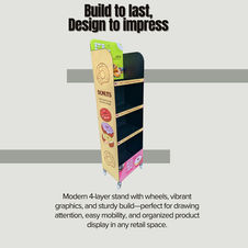 Modern 4-shelf mobile display with bold graphics that draws customers in, organizes stock beautifully, and elevates your brand presence in-store.